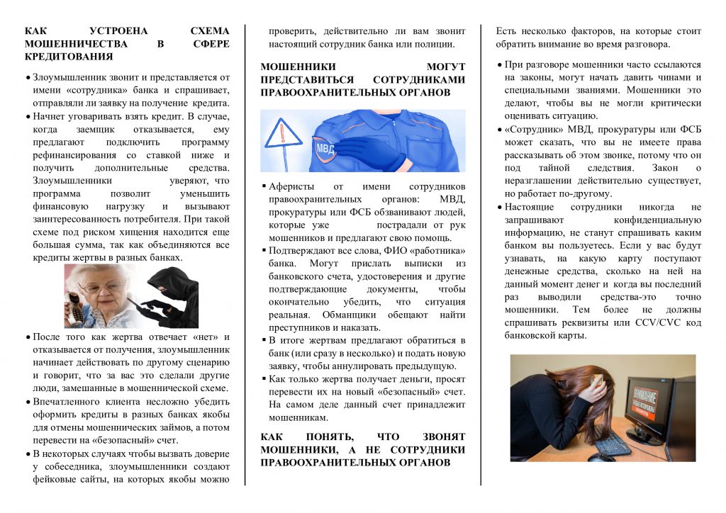 Без рубрики Как не стать жертвой мошенничества в сфере кредитования, мошенники под видом сотрудников правоохранительных органов 06.09.2024 /